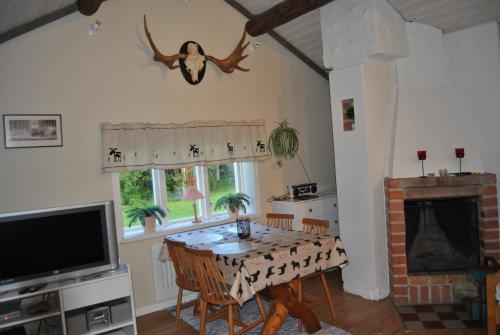 Guests will have a special experience as this holiday home offers a fireplace. Featuring a private entrance, this holiday home also is comprised of 1 separate bedroom, 1 bathroom with a shower, a kitchen and a dining area. Guests will find a stovetop, a refrigerator, kitchenware and an oven in the kitchen. The holiday home also has a barbecue. The holiday home features parquet floors, a seating area with a flat-screen TV, a tea and coffee maker, a wardrobe as well as garden views. The unit offers 3 beds.