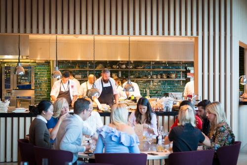 Alla gäster på Hotel Sign kan njuta av en läcker middag på American Table Brasserie & Bar, som drivs av stjärnkocken Marcus Samuelsson. Här serveras amerikanska rätter med svenska inslag.