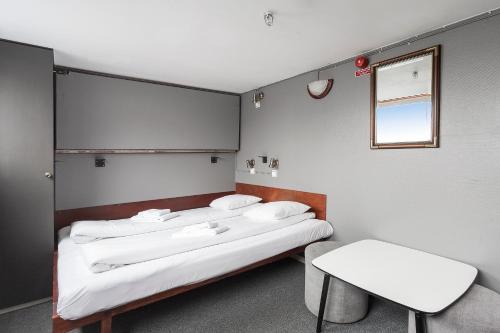 Båten Rygerfjord Hotel & Hostel ligger för ankar vid Söder Mälarstrand i Stockholm. Här erbjuds gratis WiFi och hyttliknande rum med utsikt över staden och sjön.