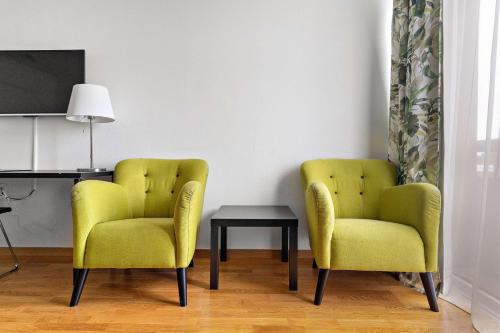 Pendeltågsstationen Älvsjö ligger 100 meter bort. Du når den trendiga stadsdelen Södermalm på 6 minuter med tåg från hotellet.