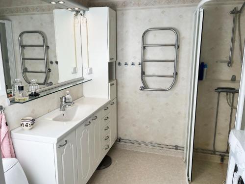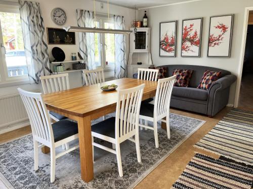 Located in Virserum in the Kalmar county region, Cosy, spacious cottage located by Lake Virserumssjon has a garden. This property offers access to a terrace and free private parking. The holiday home features 3 bedrooms, a TV, a fully equipped kitchen with a dishwasher and an oven, a washing machine, and 1 bathroom with a shower. The accommodation offers a fireplace. The nearest airport is Växjö Airport, 85 km from the holiday home.